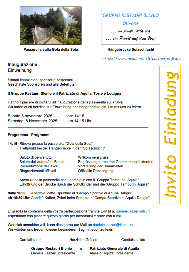 Privatpersonen können sich ein Denkmal setzen, indem Sie einen Laufmeter Brücke – einen Passarella Soiaschlucht-Meter – im Wert von CHF 1'000 erwerben.